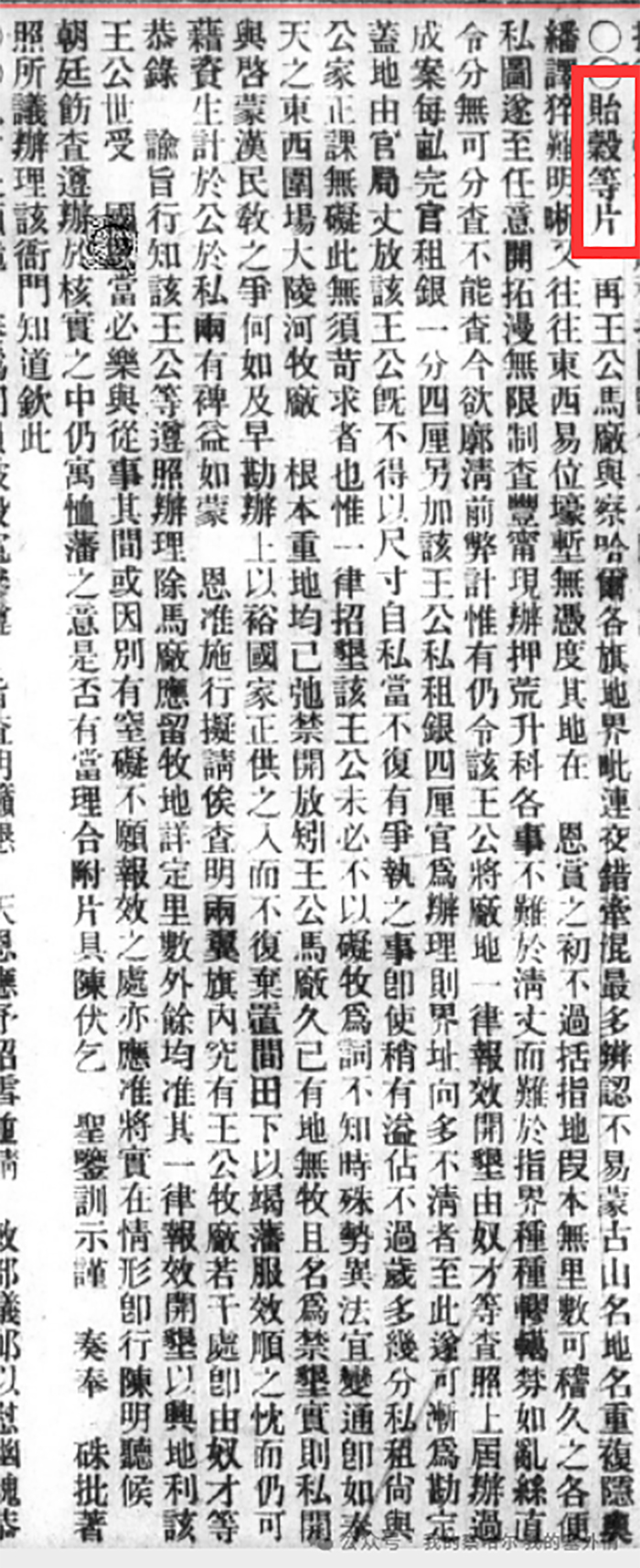 其具体讲的大概是,大同以北右四旗的牧区开垦已经基本完毕,现在要开辟宣化府以北左四旗的牧区。