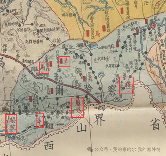 清廷将察哈尔故地收归国有,建立了庞大的皇家牧厂与军马场。这些牧场的名字与归属,决定了日后城镇的雏形: