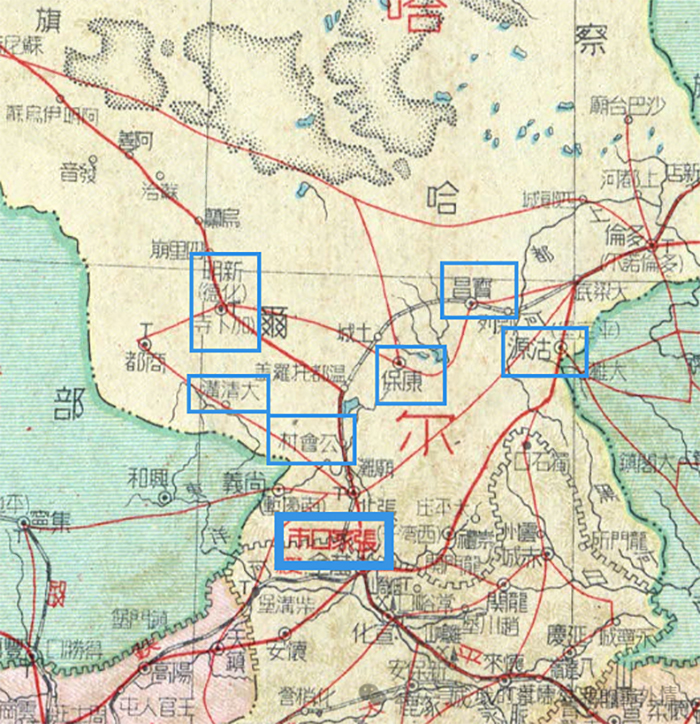 1945年察哈尔地图(局部)。