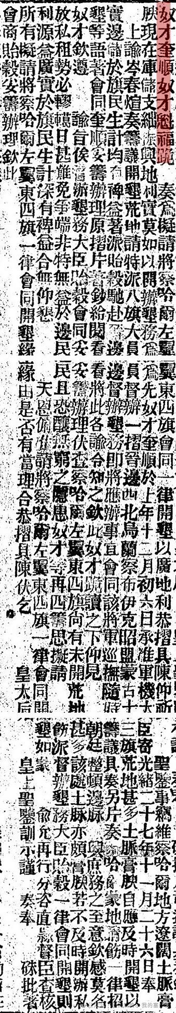 光绪二十八年六月十二日,也就是1902年的7月16日,光绪皇帝这一天共收到五个奏折,其中之一就是《大臣奎奏为开垦旗地折》。