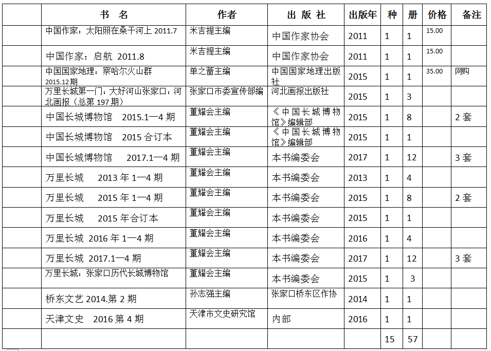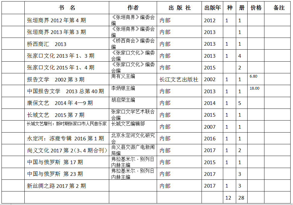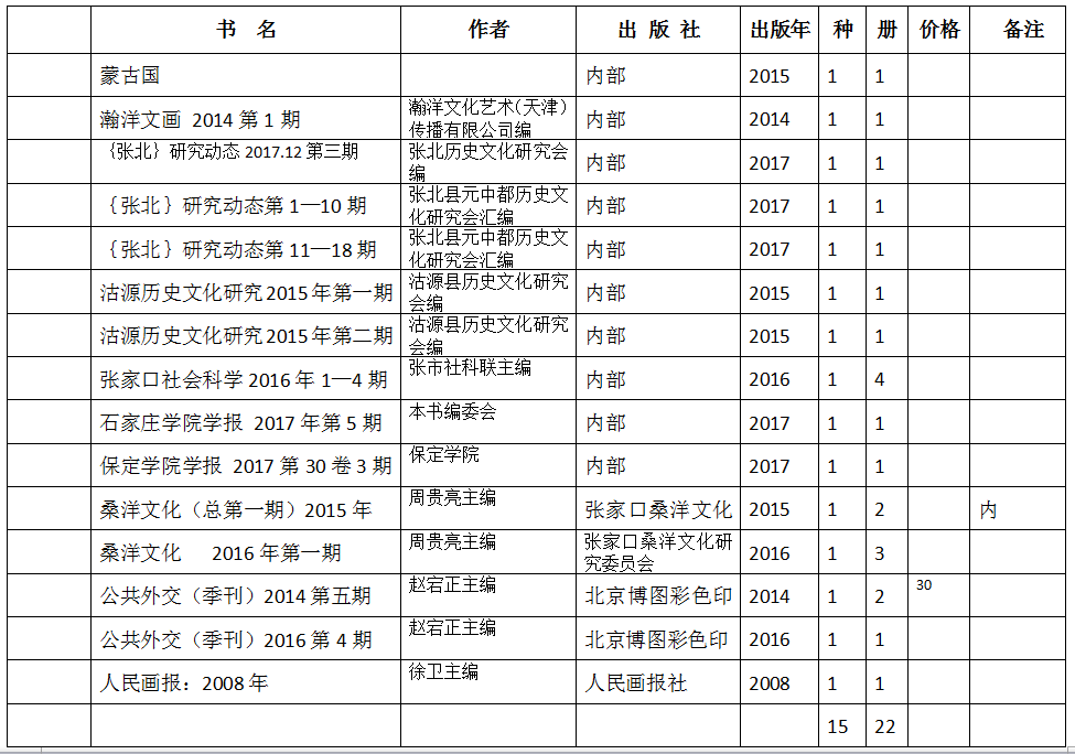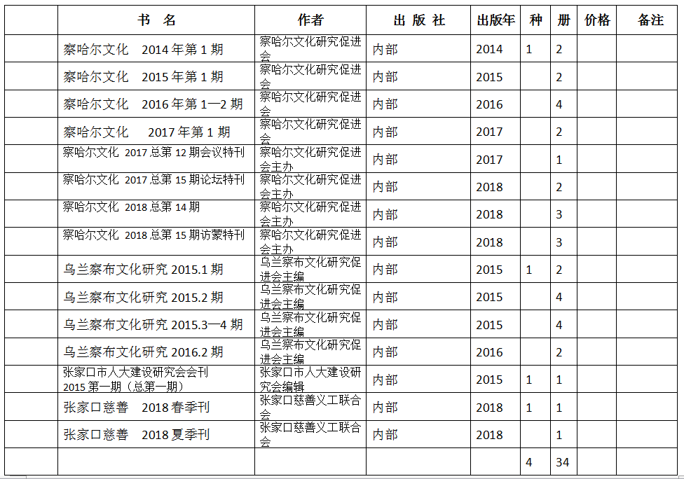 张家口察哈尔文化研究会期刊目录